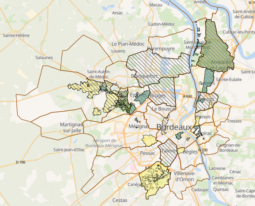 Gradignan est la seule ville de la métropole bordelaise dont la totalité du territoire est concernée par la déclaration de location (couleur jaune). Quelques secteurs de Gradignan sont soumis au permis de louer : c’est le cas de la résidence Rosiers-Bellevue (carte du Permis/Déclaration de location de la métropole).